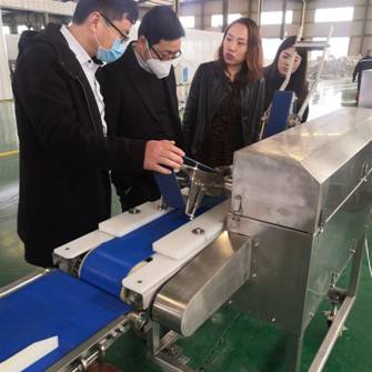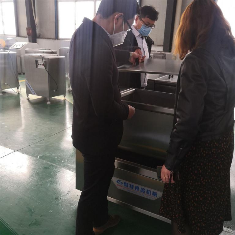 在原料化凍的過程,客戶參觀了成品庫、生產車間、以及相關設備的細節配置,解凍后客戶加工的產品需要從中間取出費料,通過取出后再進行切片處理.