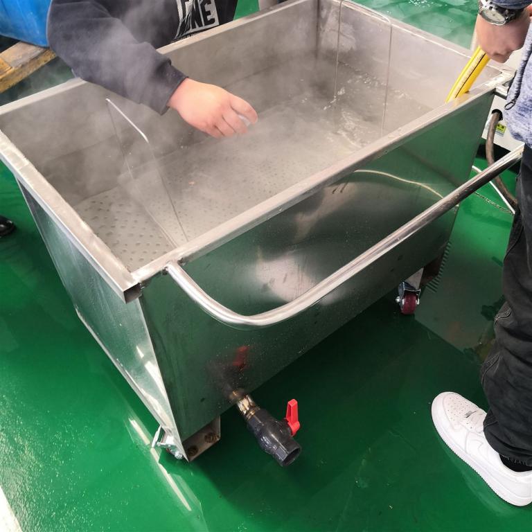 用熱水燙后進行清洗,氣泡清洗機正在清洗