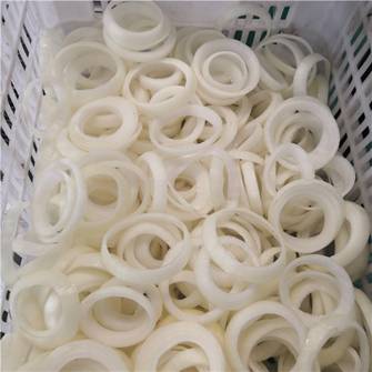 2020年3.20號,客戶是加工洋蔥的廠家,客戶帶來了切好的洋蔥圈,使用氣泡清洗機試機