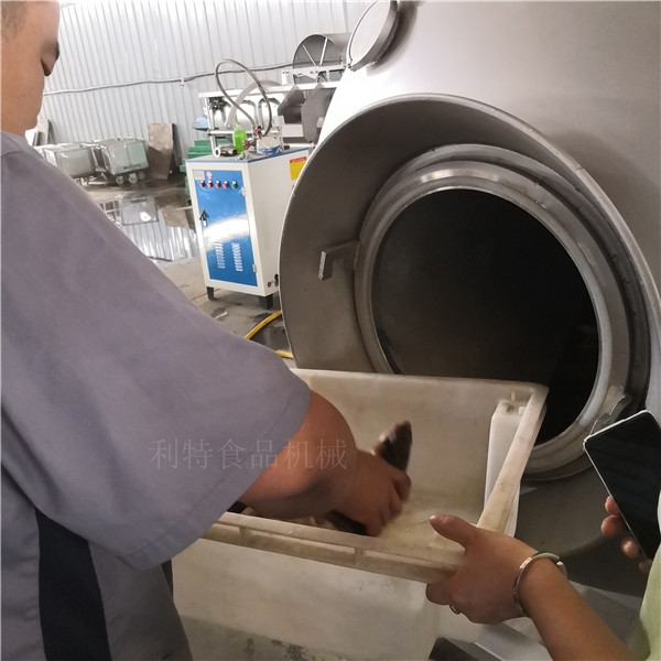 董總經(jīng)營(yíng)著一家肉食品加工廠,上新的產(chǎn)品,根據(jù)自己的加工工藝需求,需要將產(chǎn)品進(jìn)行真空腌制。由于之前沒用過真空滾揉機(jī),為保障自己的產(chǎn)品質(zhì)量達(dá)標(biāo),也同時(shí)想驗(yàn)證一下使用真空腌制對(duì)產(chǎn)品有什么樣的提高,因此從青島帶著自己的原料來公司現(xiàn)場(chǎng)試機(jī)。現(xiàn)場(chǎng)試機(jī)也是想看一下使用設(shè)備后的效果,而且是比較直觀的看到設(shè)備的操作流程以及設(shè)備運(yùn)行的一些相關(guān)事宜。