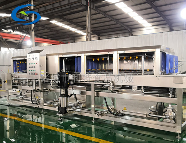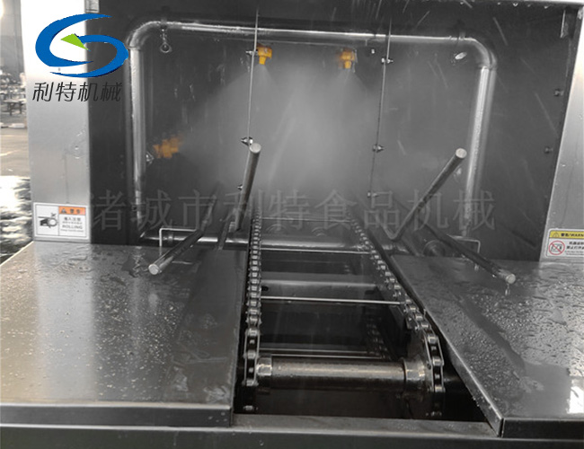 3、漂洗段:將筐子表面殘留的污漬漂洗掉,達(dá)到表面無殘留,同時對筐子消毒殺菌。
